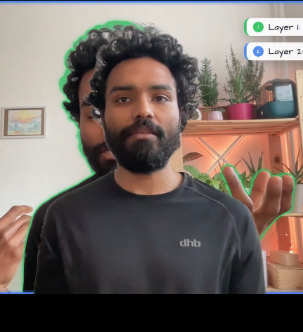 My first experiment was animating some effects end-to-end. This time I wanted to try something fancier: the classic "text behind me" effect, without green screen, without opening Premiere.